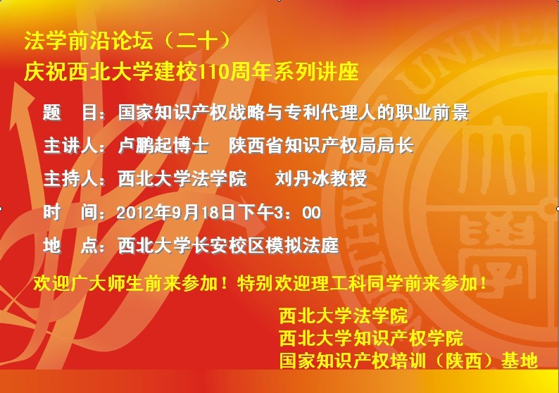 法学前沿论坛(二十)暨庆祝我校建校110周年系列讲座