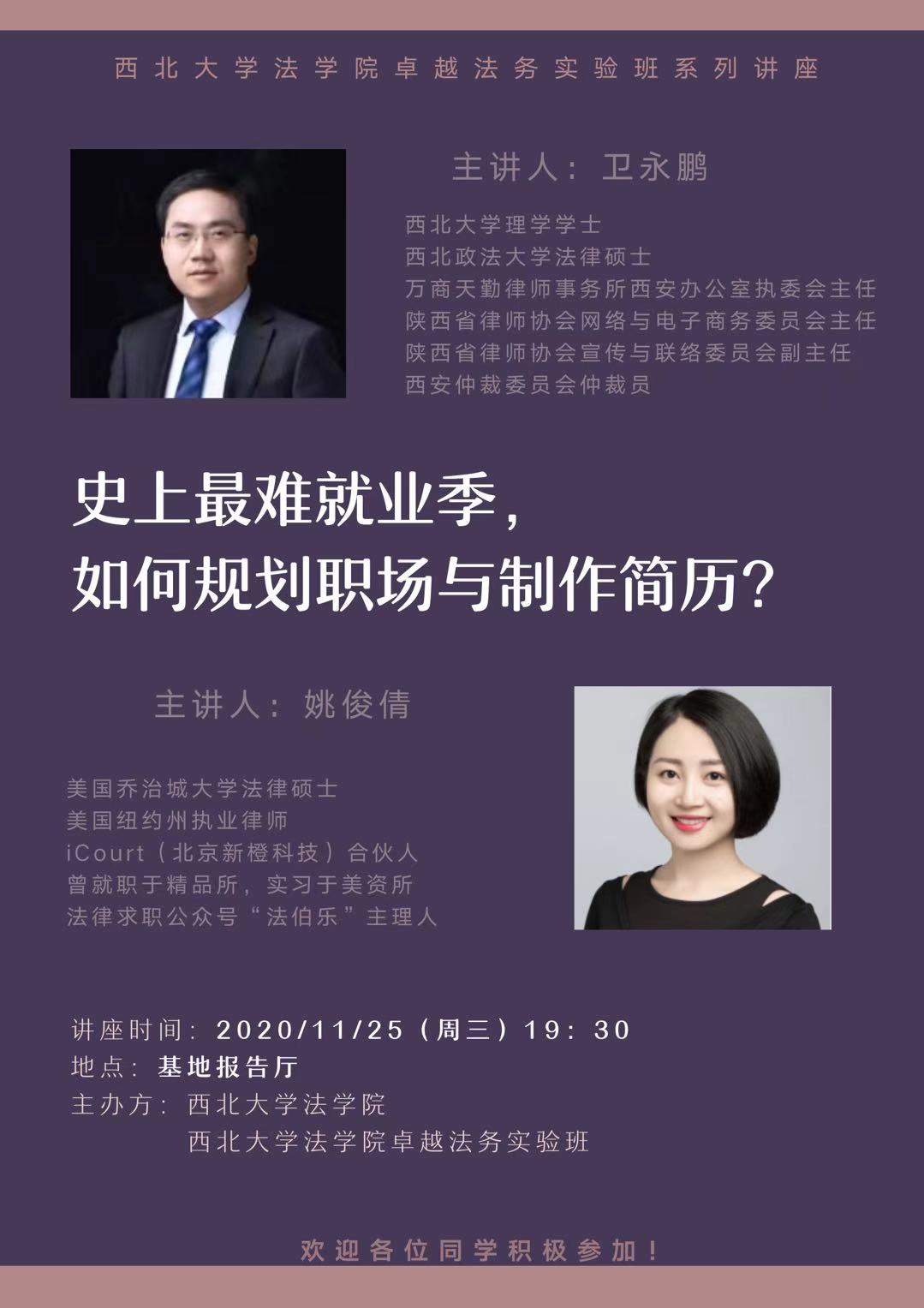 242net必赢卓越法务实验班实务讲座:“史上最难就业季,如何规划职场与制作简历?”