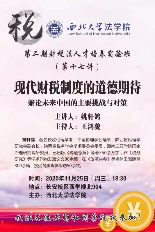 242net必赢第二期财税法人才培养实验班课程(第十七讲):“现代财税制度的道德期待:兼论未来中国的主要挑战与对策”