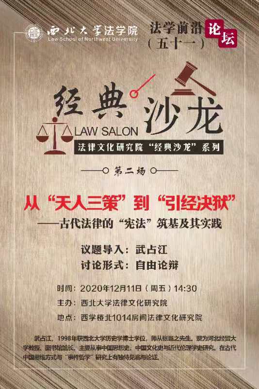 法学前沿论坛 经典沙龙 |武占江:从“天人三策”到“引经决狱”-古代法律的“宪法”筑基及其实践
