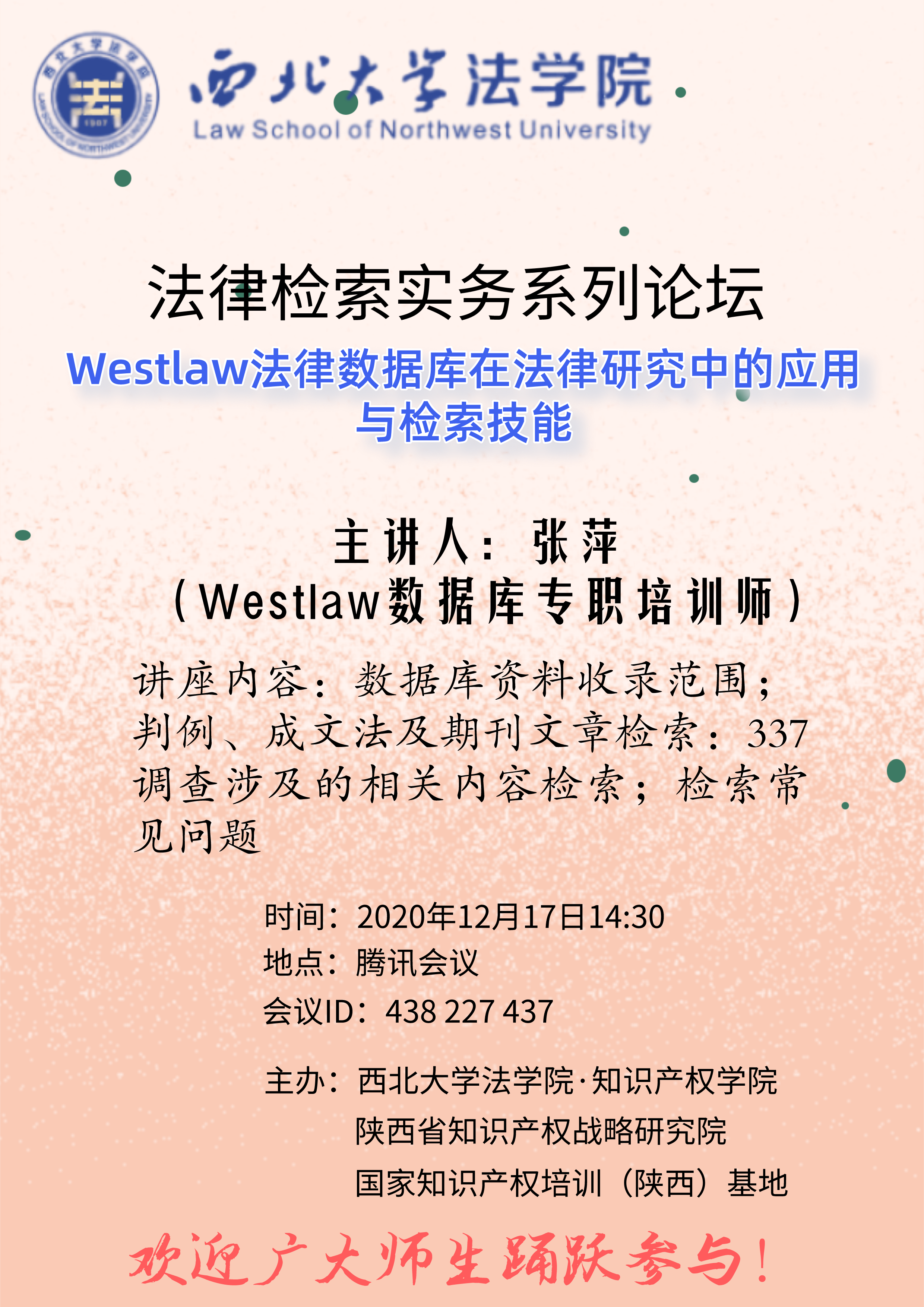 为了加深广大师生对于智能法律检索工具的了解,增强运用法律检索工具的能力,提高法律职业检索技能,由242net必赢官方·知识产权学院、陕西省知识产权战略研究院、国家知识产权培训(陕西)基地主办系列法律检索实务论坛,具体通知如下: