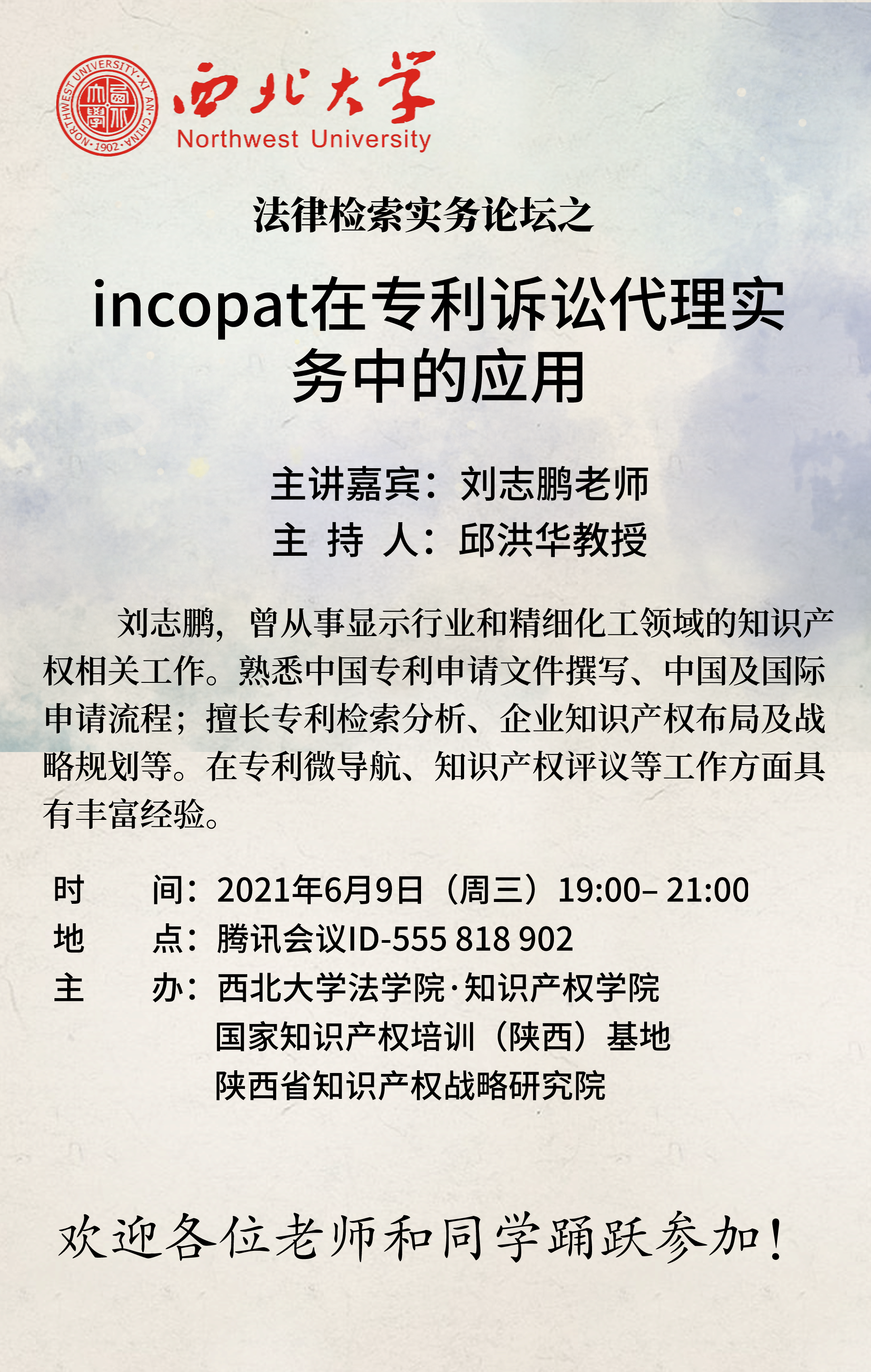 法律检索实务论坛 | 刘志鹏:《incopat在专利诉讼代理实务中的应用》