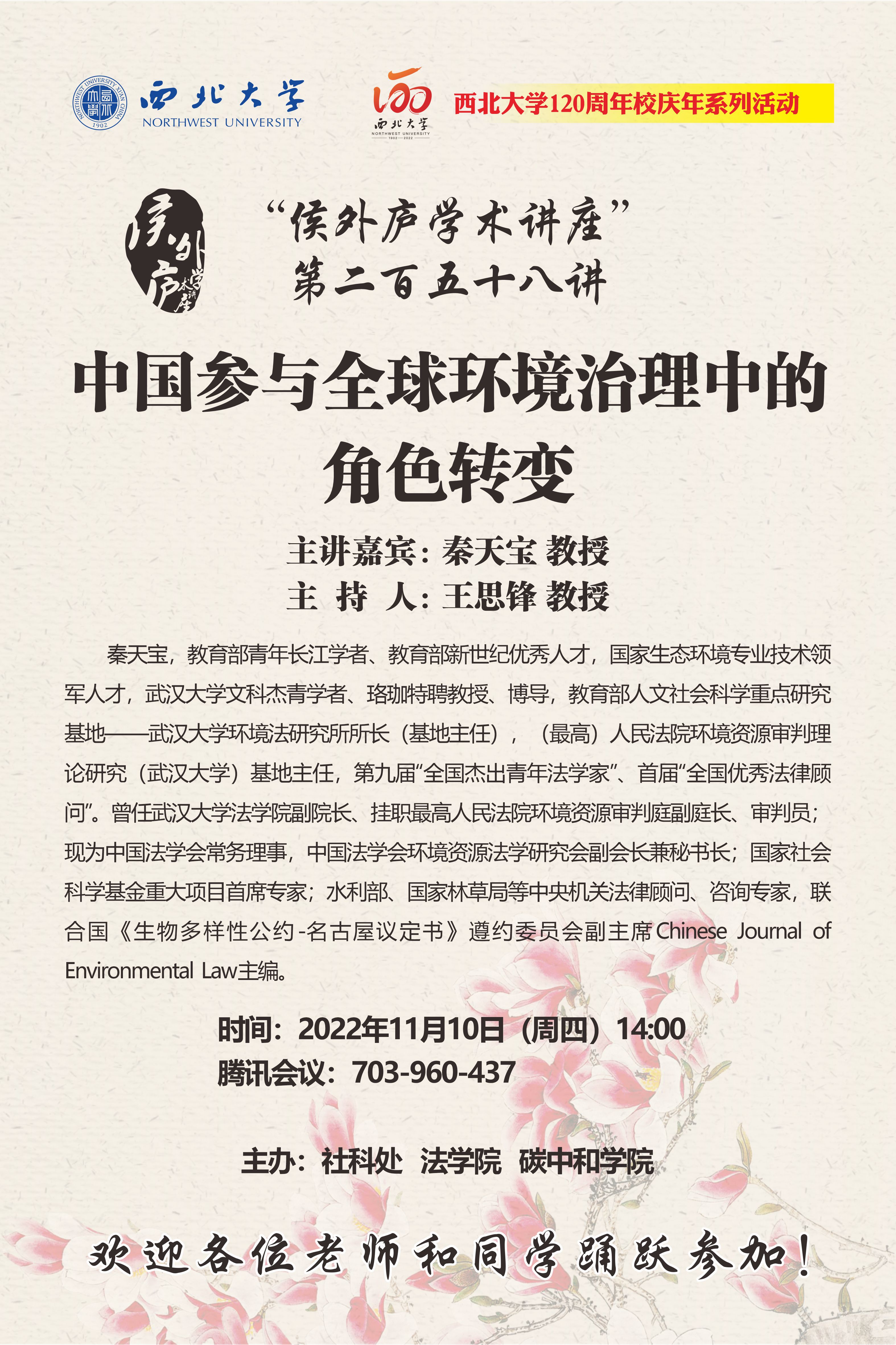 “侯外庐学术讲座”(二百五十八)——中国参与全球环境治理中的角色转变