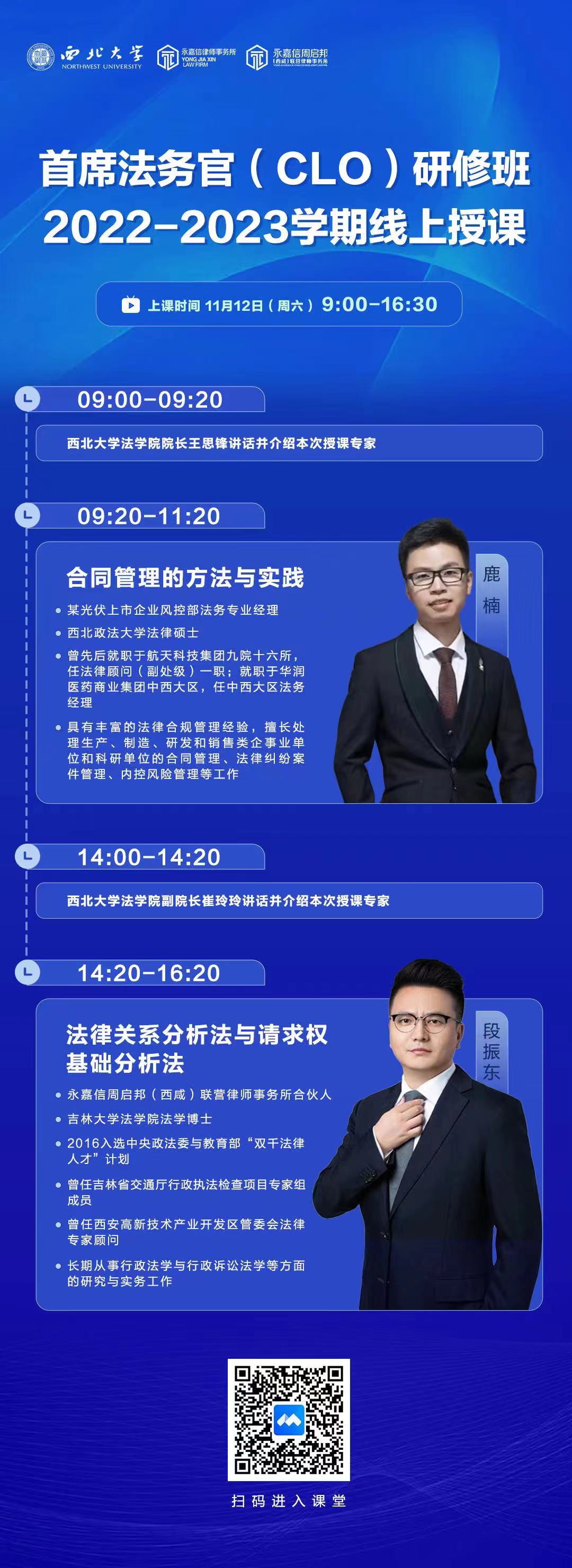 242net必赢“第二期企业法务卓越人才实验班”本学期授课通知