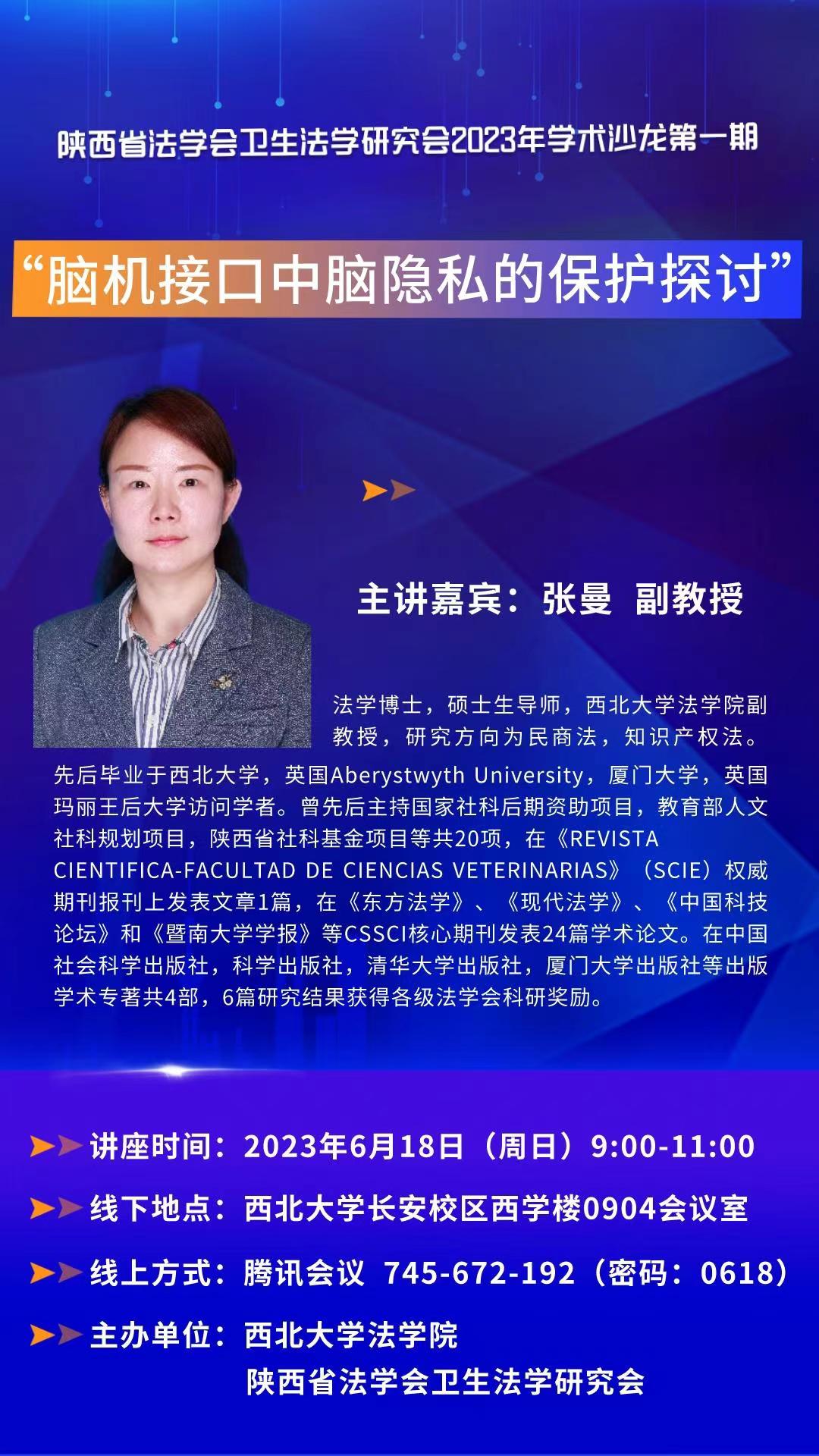 陕西省法学会卫生法学研究会2023年学术沙龙第一期 | 张 曼:“脑机接口中脑隐私的保护探讨”