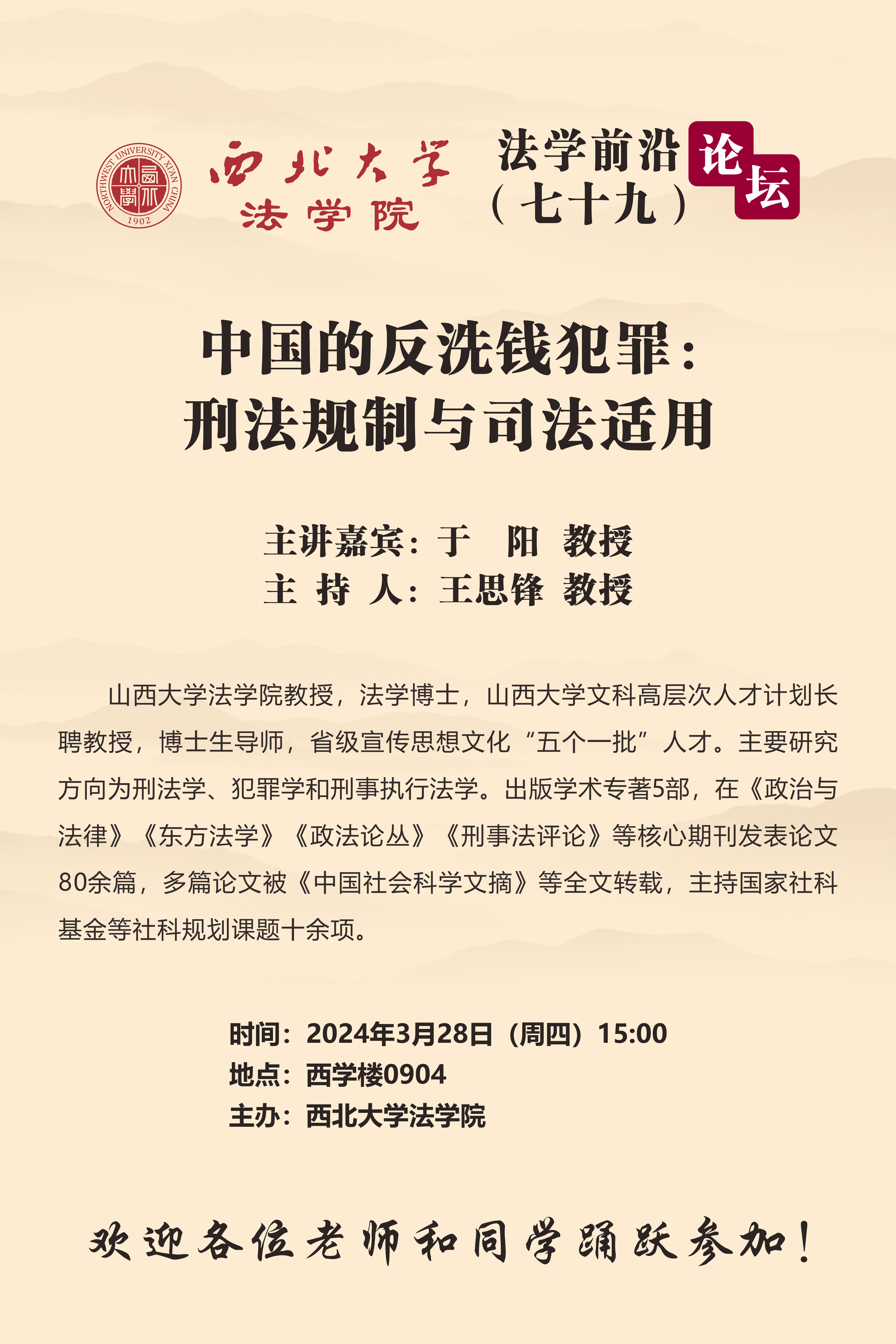 法学前沿论坛(七十九)——中国的反洗钱犯罪:刑法规制与司法适用
