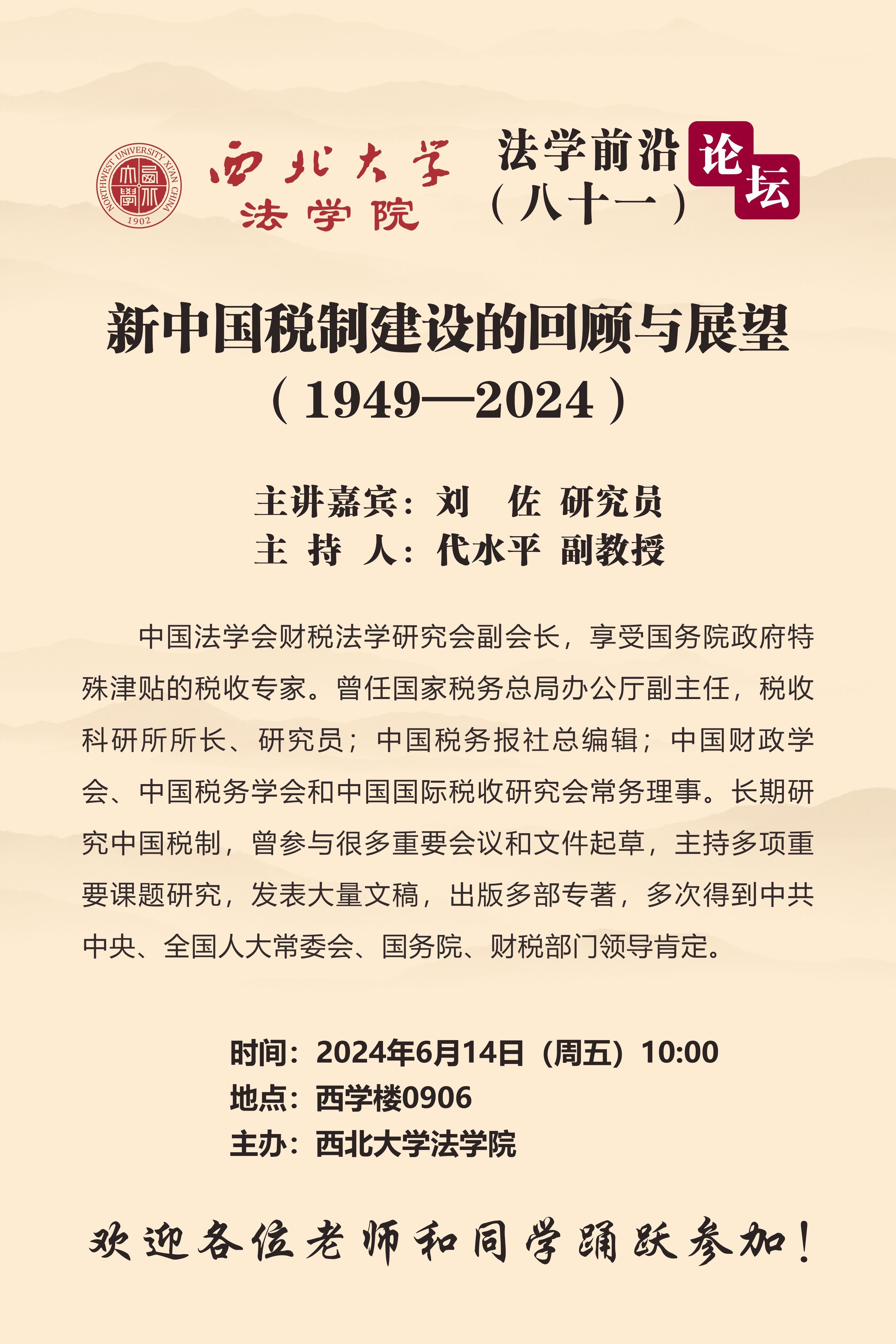 法学前沿论坛(八十一)——新中国税制建设的回顾与展望(1949——2024)