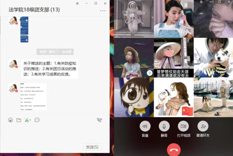 首先,2018级全体团支部成员在活动正式开始前,进行了相关的线上团支部大会。团员干部走在前面,就如何让同学正式了解疫情,如何正确对疫情有一个防范以及关于此次团日活动的具体推进等相关内容进行探讨。