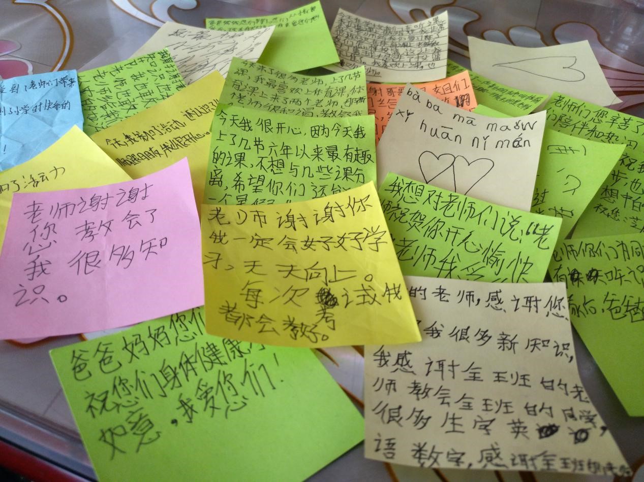 课程结束后,团队成员为孩子们赠送了若干文具,并寄予他们美好的祝愿。经过一天的相处,老师与孩子们之间相处十分融洽,很多孩子在课间主动的向老师敞开心扉,分享自己的生活趣事。还有很多小朋友将自己写下的感言赠送给老师们,表达自己最质朴的谢意。undefined
