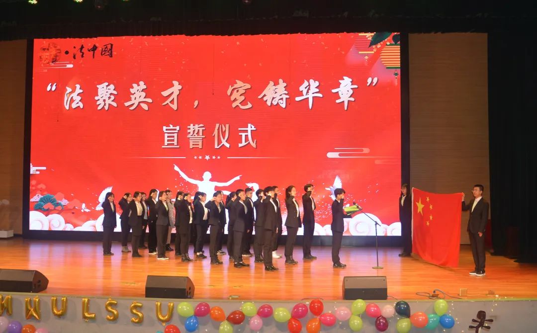 随后,我院学生会代表上台进行宣誓。庄严的誓词不仅体现了法学学子以红火青春建设西大法学,以奋斗激情建设法治中国的满腔热血,更唤起了现场观众对法治建设的深刻共鸣。