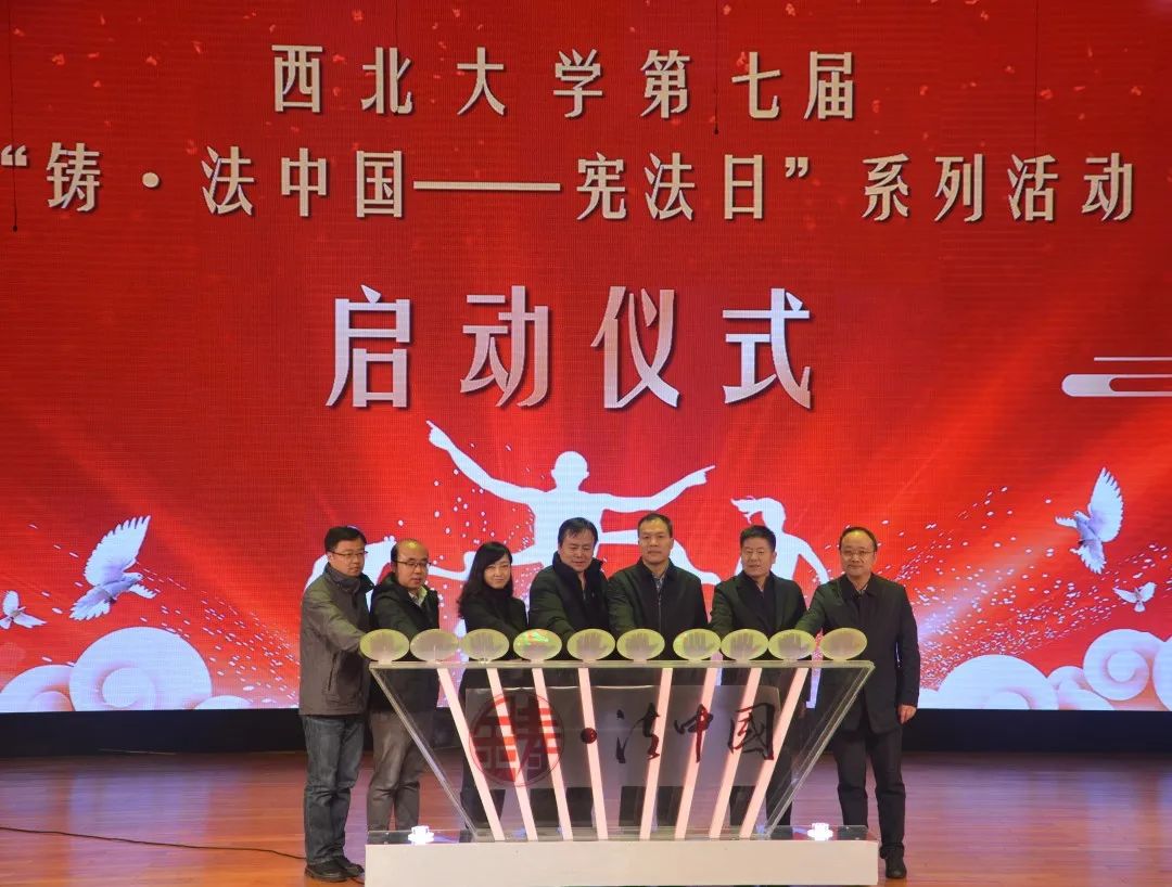 在激昂的音乐声中,主持人邀请各位嘉宾老师上台共同按下了象征“铸·法中国”精神的手印,标志着242net必赢太阳能第七届“铸·法中国——宪法日”系列活动的正式启动。