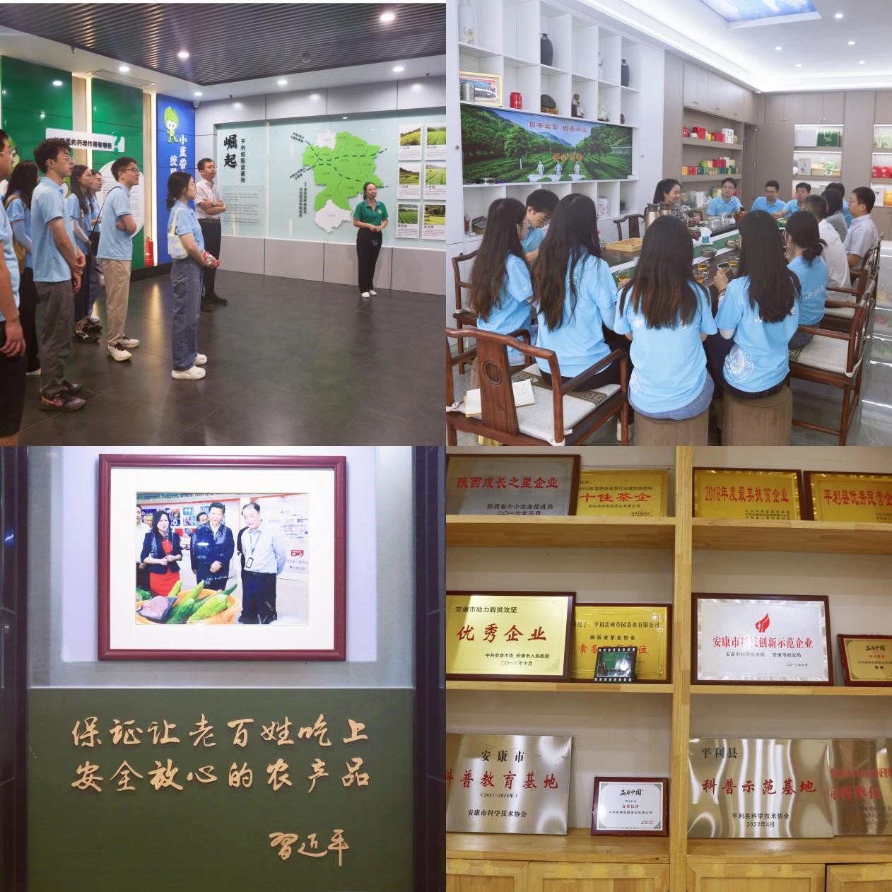 当日下午,实践调研团在田珍茶叶有限责任公司开启调研第一站,通过调研该公司的地理标志保护产品情况,了解和搜集到大量的相关数据和信息。在对该公司茶叶生产车间的参观过程中,实践调研团成员形成了立体的园区印象。田珍茶叶有限责任公司集茶产业示范、产品研发、茶文化传承、茶旅游开发于一体,坚持“服务社会、奉献社会,回报社会”的理念,充分利用和发挥产业化经营优势,采取“公司+合作社+园区+农户+基地”的模式,在促进自身企业发展的同时,带动平利地域经济的长足发展。经实地了解当地茶叶的生产情况,以田珍茶叶有限责任公司为切入点,实践调研团成员考察了平利县目前茶叶品牌发展的情况,为调研顺利开展奠定了良好基础。
