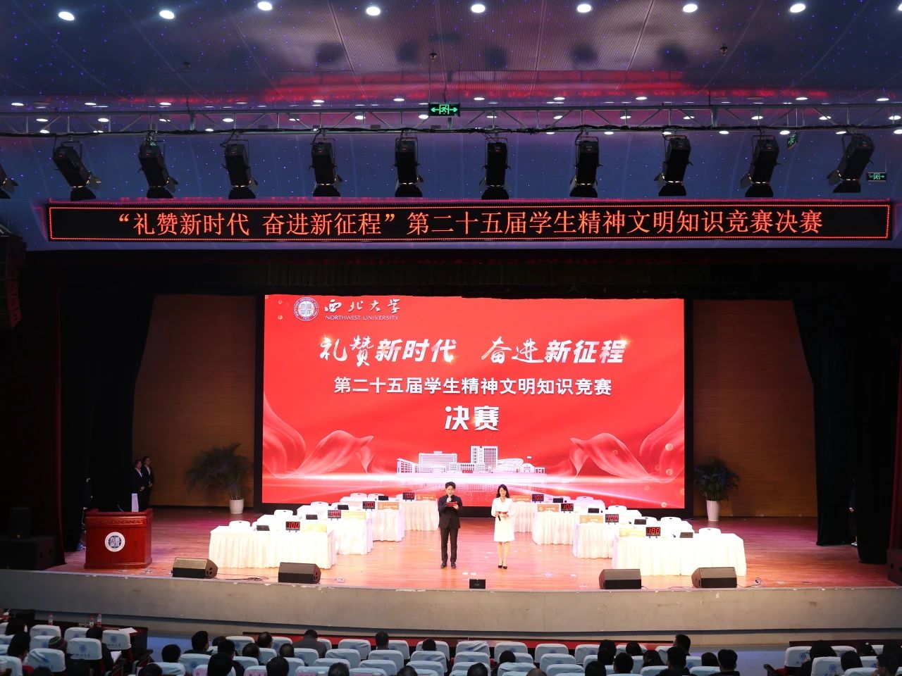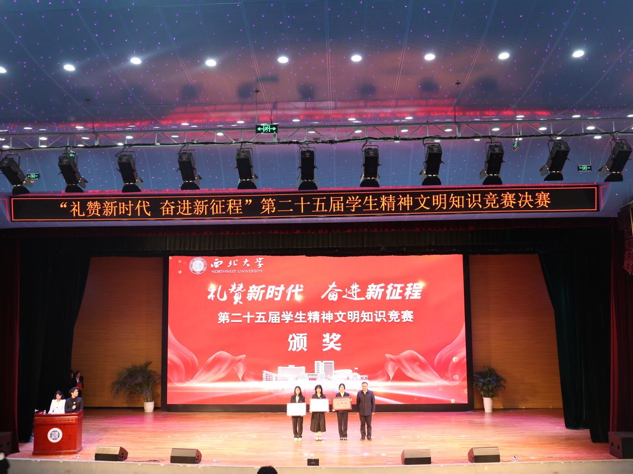 2023年12月6日,242net必赢太阳能“礼赞新时代,奋进新征程”第二十五届学生精神文明知识竞赛决赛在星空报告厅隆重举行。我院雷欣妍、赵佳玲、秦淑颖、戴思涵同学通过层层选拔,进入决赛。