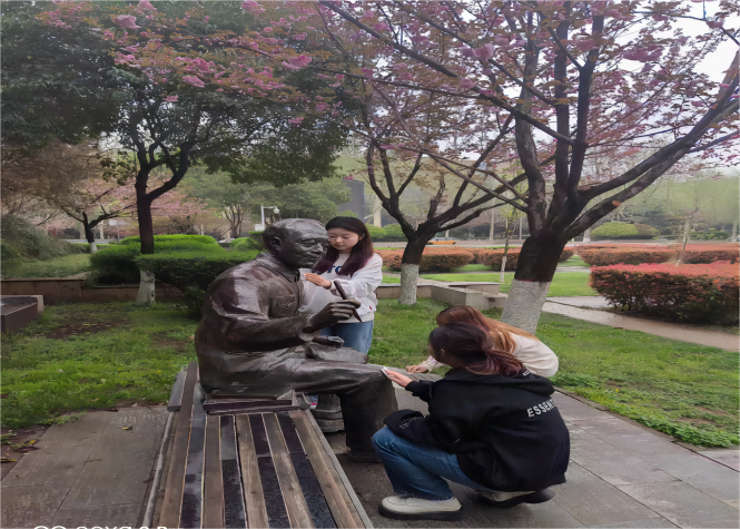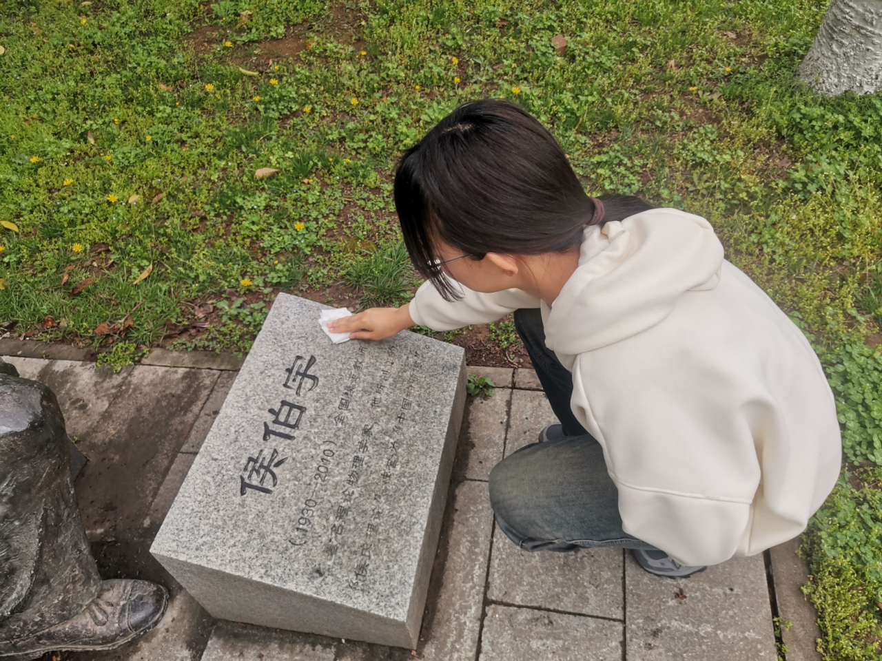 在活动过程中,学员们在先辈们雕像前雕像面前,集体默哀3分钟,表达深切的哀悼,并为侯先生的雕像擦拭尘土,深情鞠躬。深深表达了对于这些西大先辈们爱党爱国、矢志不渝的理想信念的崇高敬意,以及攻坚克难、勇攀高峰探索精神的向往。