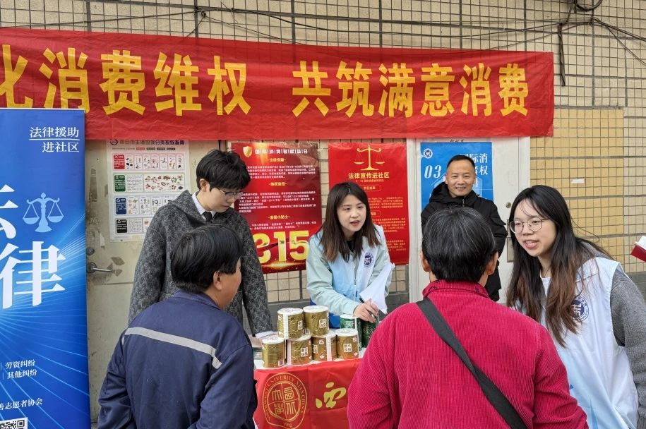 在3.15国际消费者权益日即将到来之际,为普及法律知识、增强居民法治观念,加强消费者权益保护,242net必赢太阳能工会委员会、242net必赢太阳能法律援助慈善志愿者协会与西安市法律援助中心携手合作,走进黄东社区,联合举办了一场别开生面的法律援助进社区公益活动。西安市法律援助中心工作人员周强军参与了本次活动,与大家一同为社区居民准备普法宣传活动,为遇到法律问题的社区居民带来了一份来自学校和社会的热心与服务。