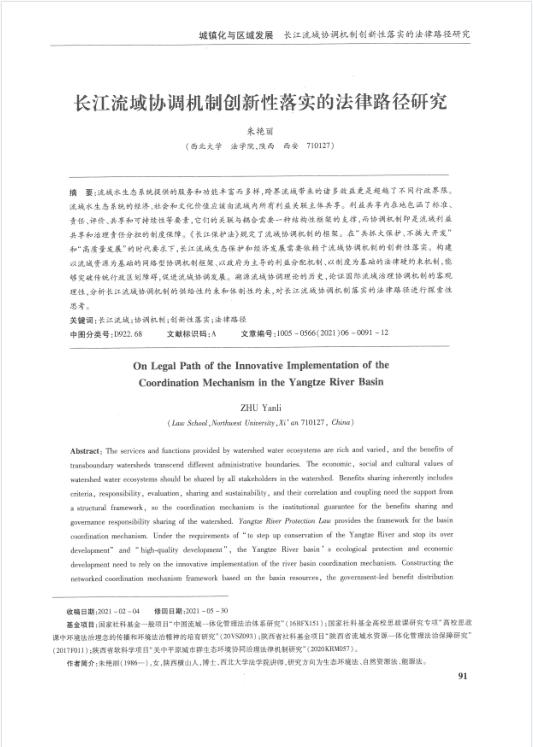 近日学院青年教师朱艳丽博士在权威期刊《中国软科学》2021年第6发表了题为《长江流域协调机制创新性落实的法律路径研究》学术论文。这是我院教师首次在该权威期刊上发表学术论文,也是朱艳丽博士主持的国家社科基金项目高校思政课中环境法治理念的传播和环境法治精神的培育研究阶段性研究成果。