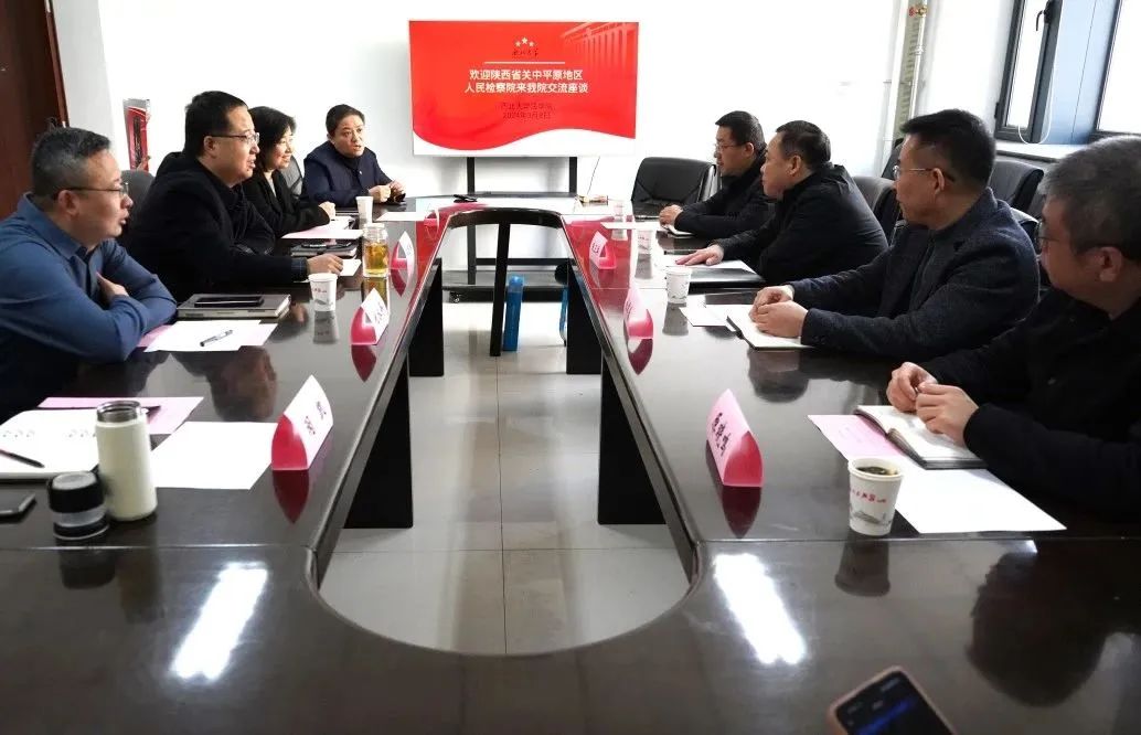3月8日,我院与陕西省关中平原地区人民检察院以“深化校检合作、落实协同育人”为主题进行交流座谈,陕西省关中平原地区人民检察院党组书记、检察长朱卫兵,党组成员、政治部主任杜耀春,检委会专职委员董同海,公益诉讼团队负责人原晓鸣;我院院长王思锋,党委副书记丁晓雯,副院长代水平,刑法教研室主任闵凯,刑法教研室副教授尉琳与学生代表参加了本次座谈。