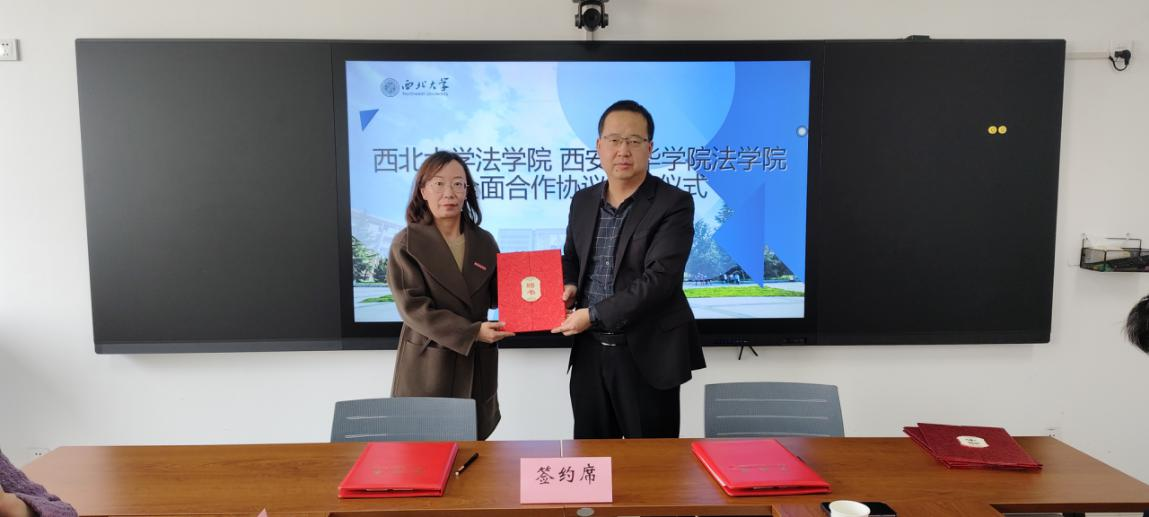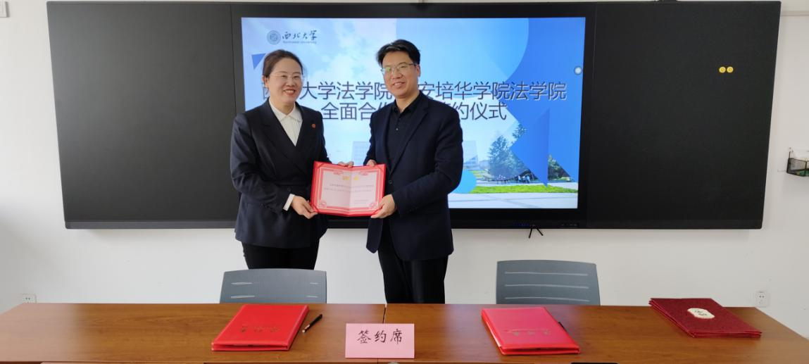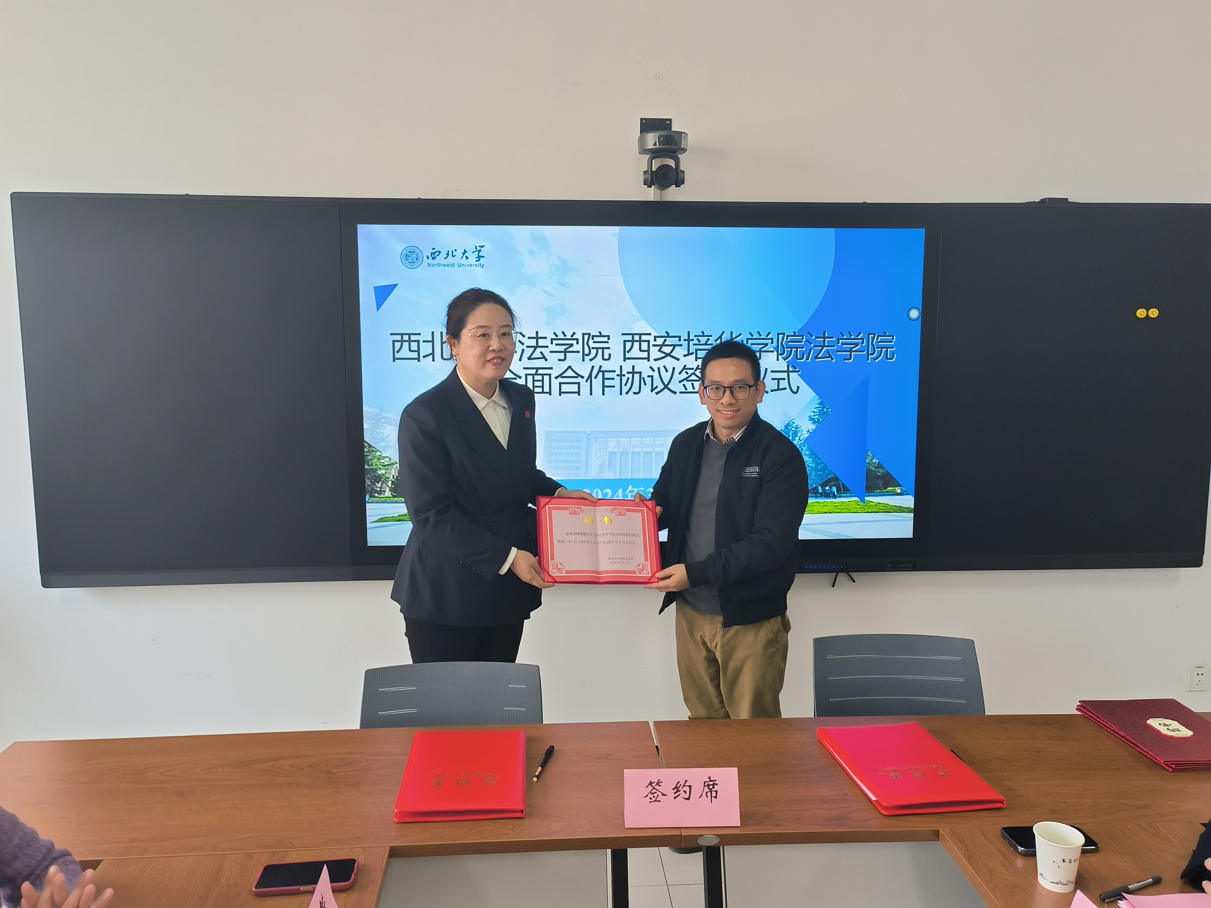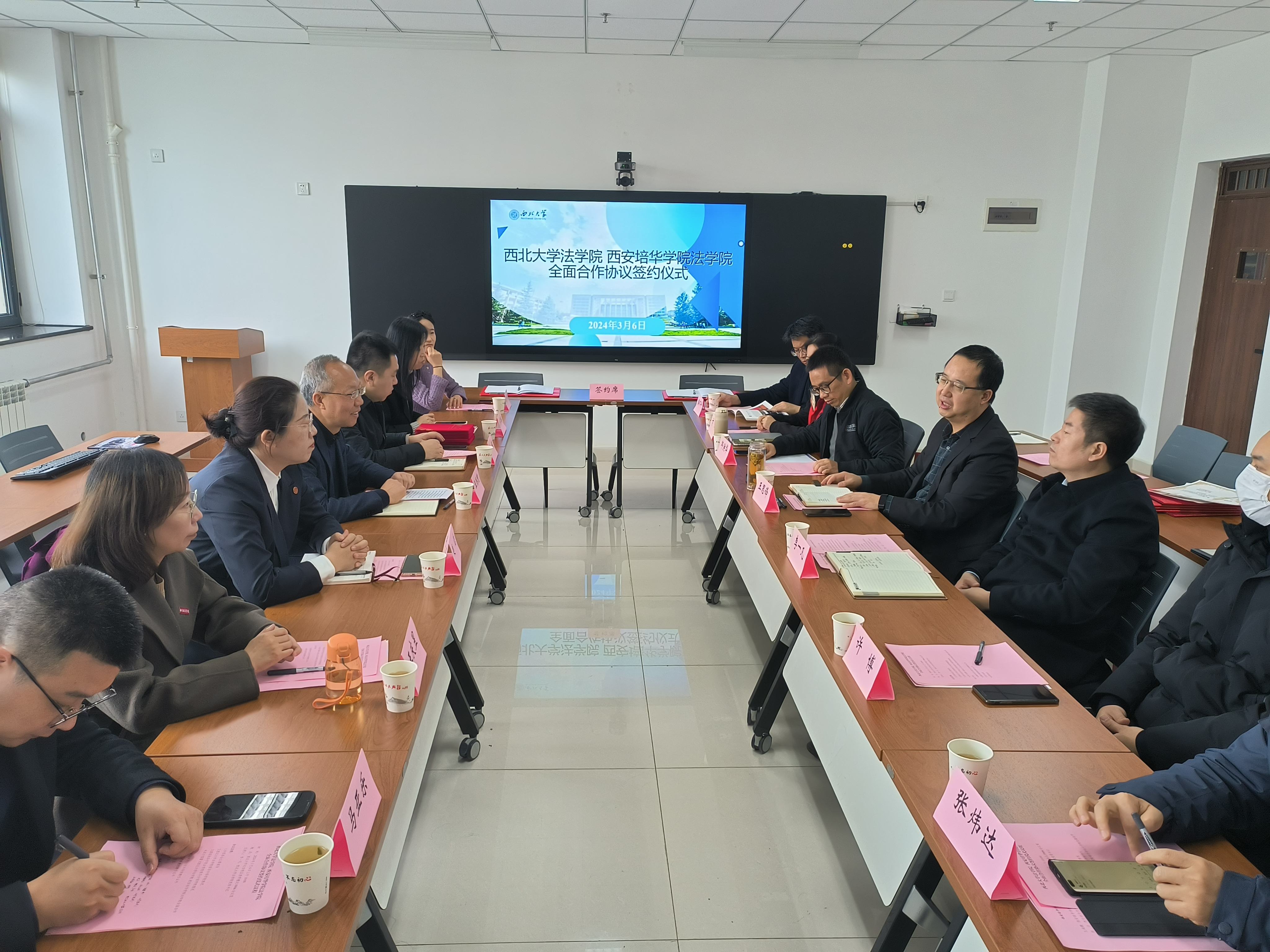 36日上午,我院与西安培华学院242net必赢在长安校区西学楼0906举行全面合作协议签约仪式。西安培华学院242net必赢院长王鸿貌、副院长赵洁、党总支书记兼副院长韩斌、副教授王庆昱、综合办公室主任刘冬梅、法律实务教研室主任马亚乐、私法教研室主任高燕、综合办公室工作人员吴煜华;院党委书记李一凡院长王思锋副院长邱洪华、许博工会主席卞辉宪法学与行政法学教研部主任张炜达理论法学教研部主任潘怀平环境与资源保护法学教研部主任王社坤学院办公室主任王哲参加签约仪式。签约仪式由院党委书记李一凡主持。
