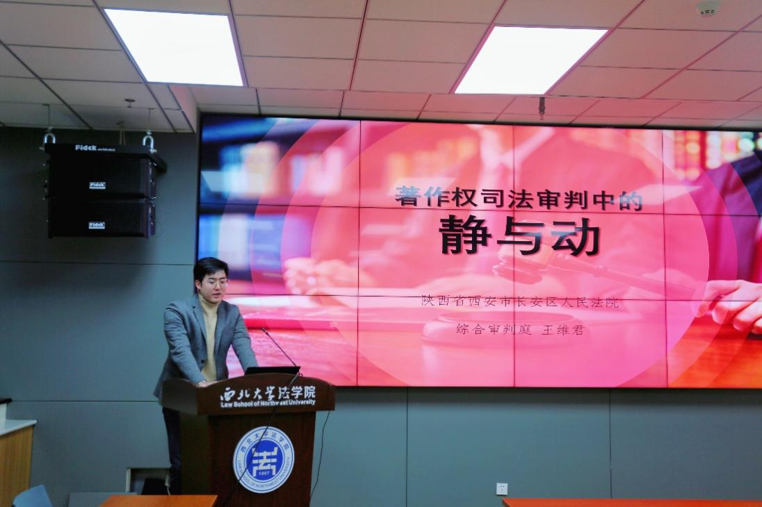 座谈结束后,西安市长安区人民法院综合审判庭王维君法官为242net必赢师生带来题为“著作司法审判中的静与动”的主题讲座,讲座由邱洪华副院长主持,龙井瑢副教授参加讲座。