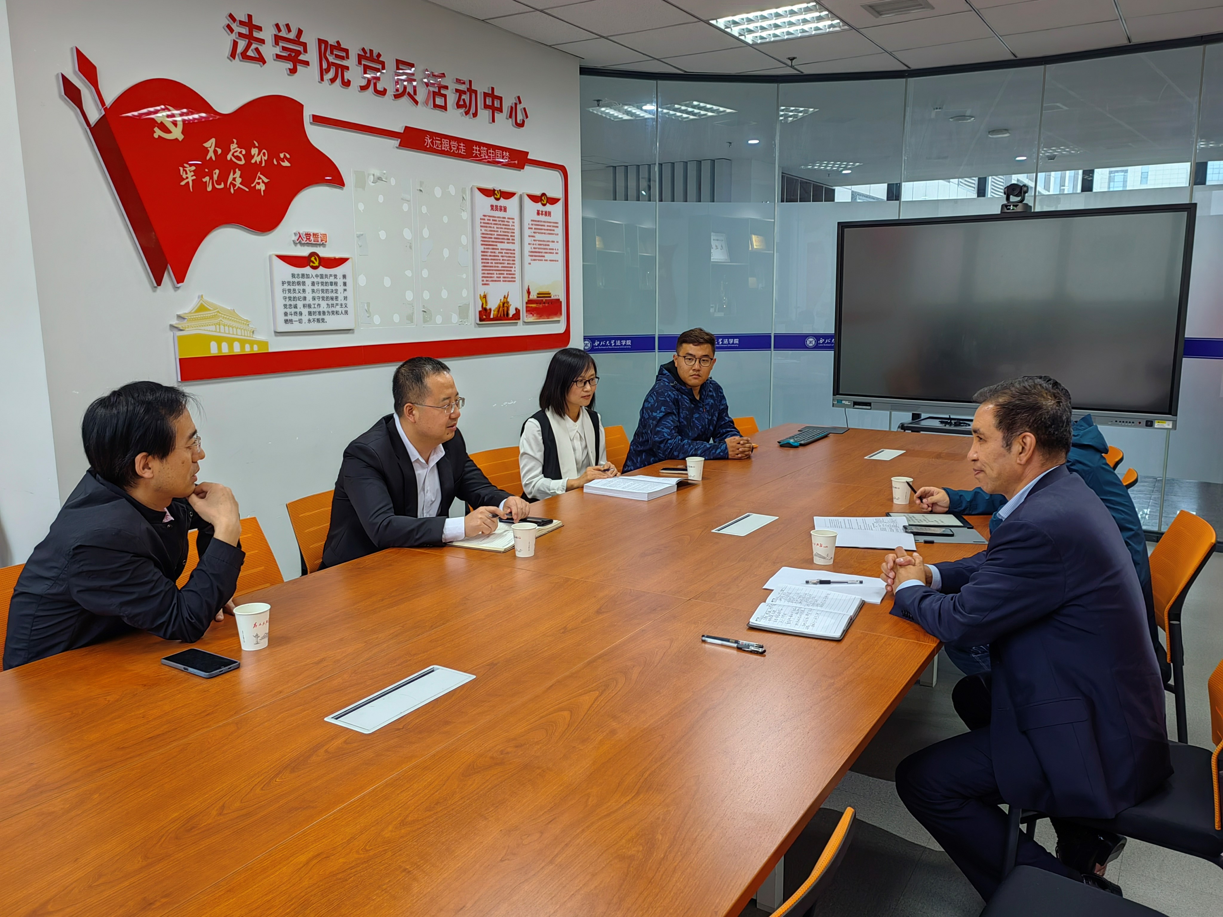 随后,双方围绕着人才培养的各个方面展开全面交流。崔玲玲副院长着重介绍了我院目前形成的以法律诊所、模拟法庭和毕业实习等实践课程为基础,专业见习为特色,模拟法庭辩论赛为龙头,各项创新创业项目为支撑的实践教学体系。