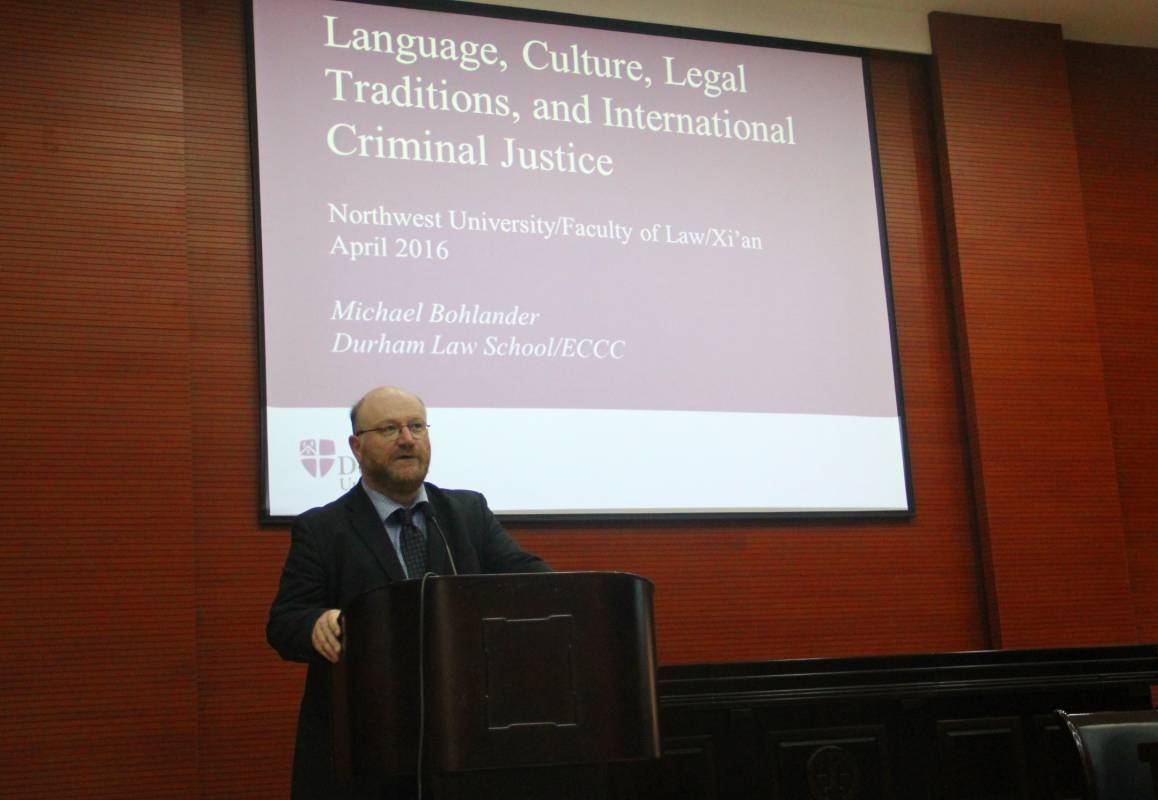 4月14日下午,英国杜伦大学的Michael Bohlander教授受我院邀请,在模拟法庭作了题为“Language, Culture, Legal Traditions and International Criminal Justice”的精彩讲座,讲座由我院副院长曾加教授主持,余高能副教授、王钢副教授点评。我院师生共计200余人聆听了此次讲座。